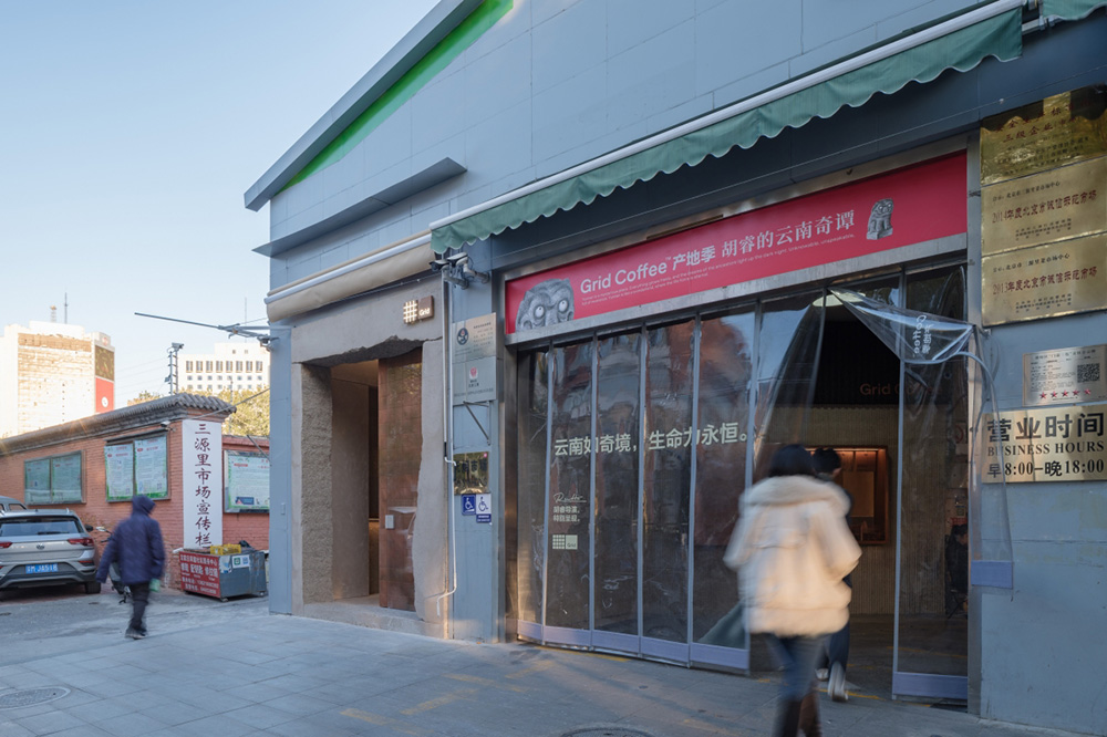 In the vibrant SanYuanLi Market, where the essence of daily necessities intertwines with the aroma of cooking, the project draws inspiration from the distinctive characteristics of the site and it seamlessly extends the spatial sequences and behavioral patterns inherent in the market, emphasizing functional operations by integrating the display, storage, and sale of goods within limited stalls. Building upon this concept, the project introduces window-type retail spaces on the inner façade of the café within the market, fostering interaction among various stalls and blurring the boundaries between the café and the market.