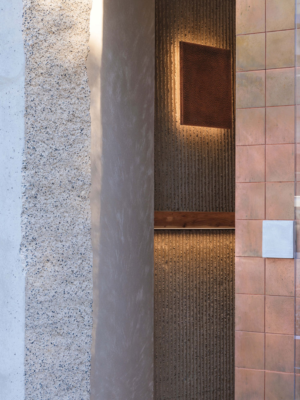 Due to spatial constraints, this project prioritizes simplicity in material selection while seeking richness and vibrancy in detail expression. It showcases a sense of layers through the unique textures, glossiness, and color variations of each material. Simultaneously, we emphasize the handcrafted nature of the materials and the involvement in the construction process to present a more natural state that resonates with the ambiance bestowed by the site. Beginning with the entrance design, we have discarded rigid forms and, through the manual craftmanship of designers and construction artisans, created a crafted “primitive’ look.