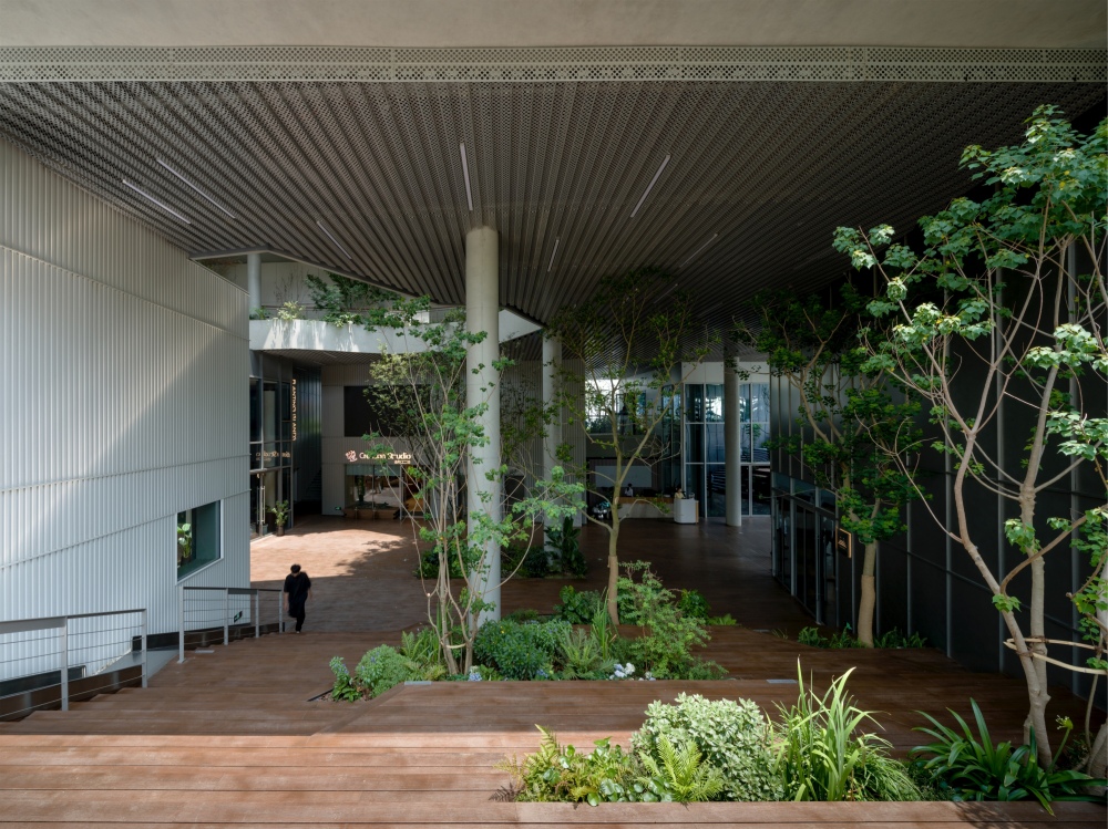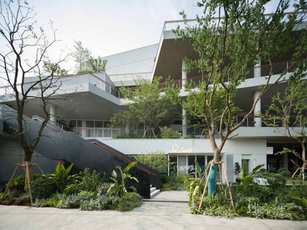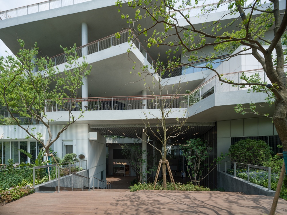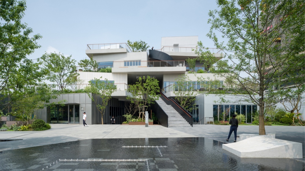 Under the site conditions where the urban environment and natural ecology are intertwined, we hope to introduce a regulator that helps people leave the city and enter nature, and creates as much comfortable and rich outdoor activity spaces as possible in the plaza. The inclusion of up to 3500㎡ _of outdoor space within the 7000㎡ _of architectural space is a key element of the project. In conventional real estate projects, the design methods involving huge amounts of non-indoor spaces contradict the logic of the real estate revenue, leading to a considerable contradiction. However, in this project, the client strongly agrees with the concept of integrating nature and architectural space, resulting in a completely open architectural form.
