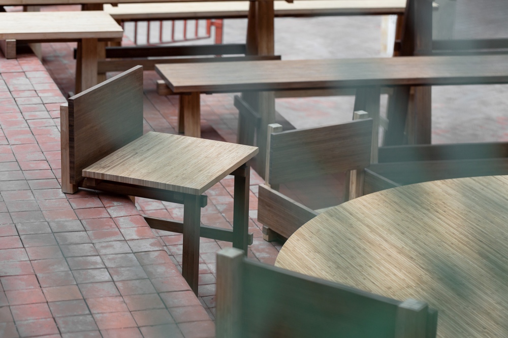 The first version of “Symbiotic Urban Furniture Project” was exhibited at UCCA Lab in Beijing. The second version is showed at the 9th Bi-city Biennale of Urbanism\Architecture in Shenzhen. The main materials of the first version in Beijing are steel and walnut. Five different urban scenes were installed in the exhibition to show the symbiotic relationship between the furniture and the city.